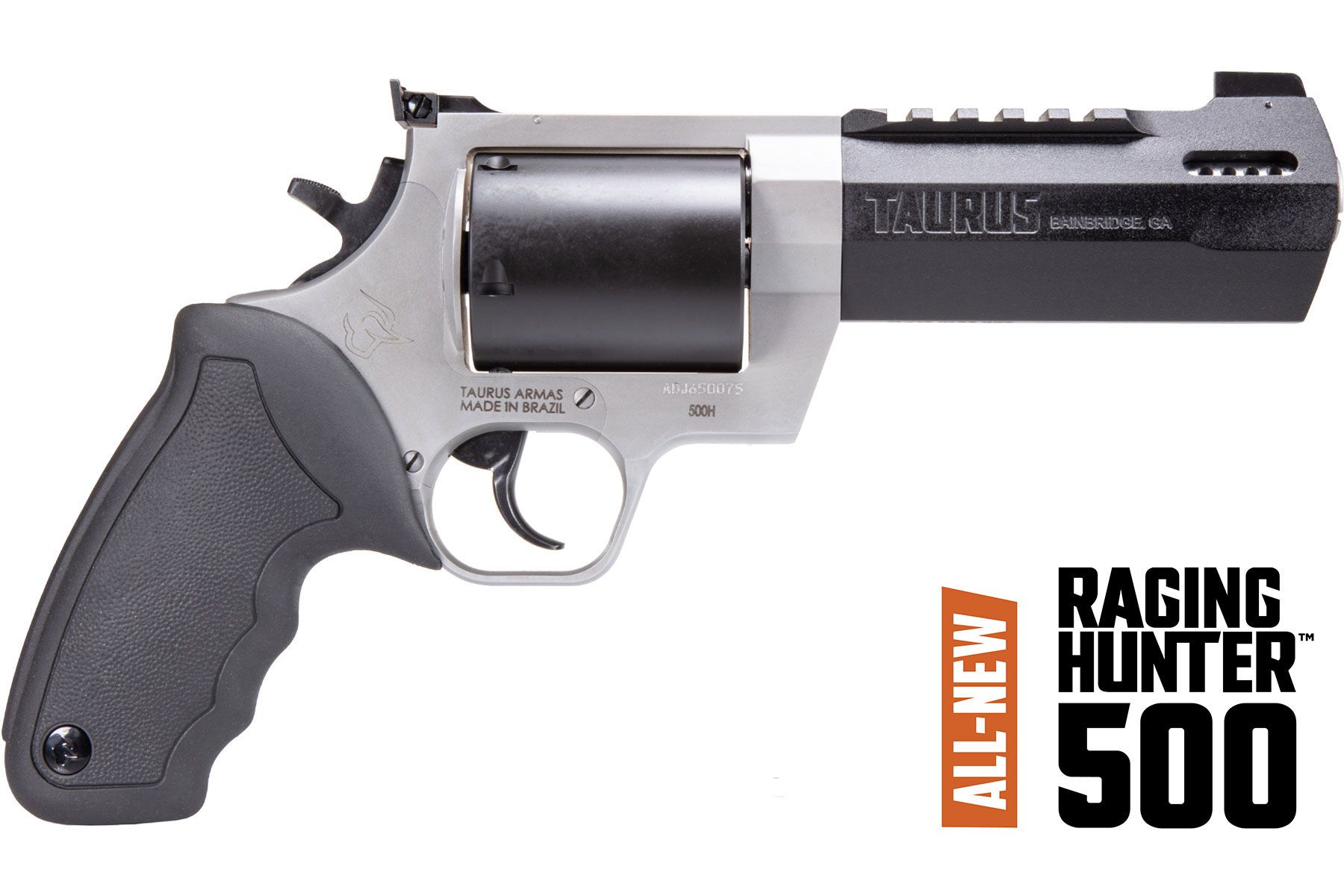 The Raging Hunter is now available in the most powerful factory revolver round: The 500 Magnum! Hunters have been asking for their favorite revolver in 500 Magnum, and now it’s here. This Raging Hunter comes with all the features you’re used to, but now with all the terminal ballistics of the 500 Magnum. The 500 Magnum Raging Hunter is available in 5, 6.75, and 8 inch barrel lengths, and features custom barrel ports to help reduce the recoil of 500 Magnum. With a 5 round capacity, the 500 Magnum Raging Hunter is the perfect companion as a backup gun for dangerous game hunts, or a primary gun for anything that walks on 4 legs.