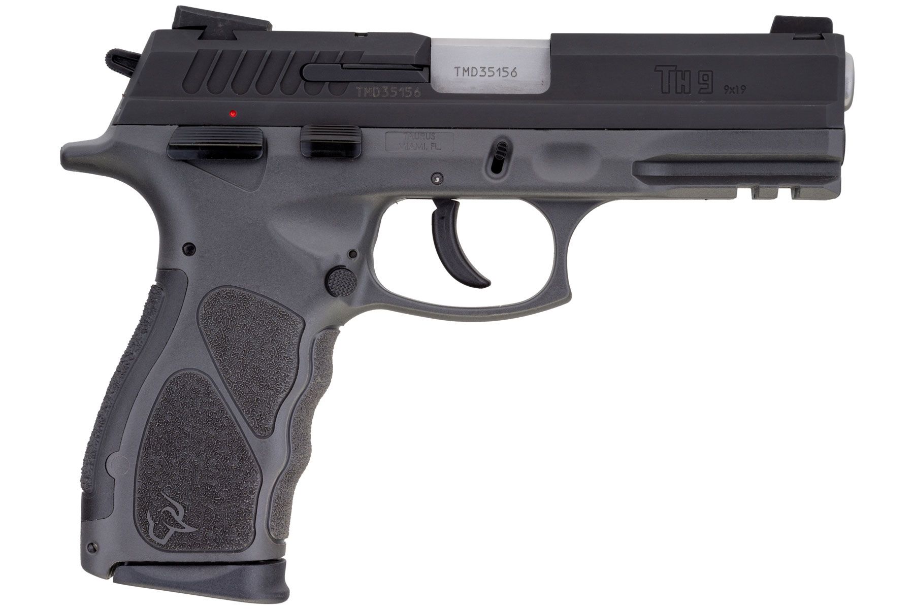 The Taurus® TH series of hammer-fired pistols. Well-equipped, ultra-dependable and chambered in 9mm Luger, the TH series is a modern reinvention of the classic hammer-fired SA/DA semi-auto platform. Available in both full-size and compact models, the TH series is built on a polymer frame that boasts finger grooves along the grip, generous stippling panels and interchangeable backstraps (full-size only) for a custom fit.